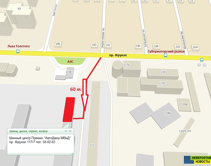 Уважаемые клиенты, с большим удовольствием сообщаем Вам об открытии нашего нового, самого крупного в городе торгово-сервисного шинного центра по проспекту Фрунзе 117/7 (пересечение ул. Льва Толстого и пр. Фрунзе) , тел:50-02-03