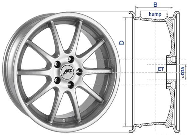 Диаметр диска (D), — диаметр кольцевой части обода, на которую опирается шина. Измеряется в дюймах.